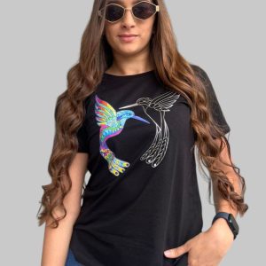 Camiseta Dama Colibrí Plata Metalizada